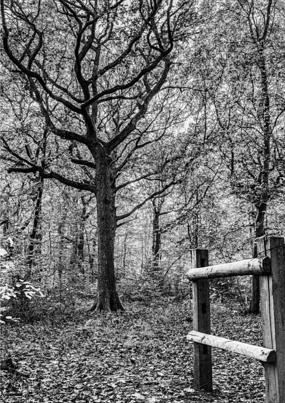 All the leaves were brown and the sky grey