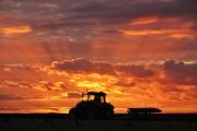 Ploughing at sunset.